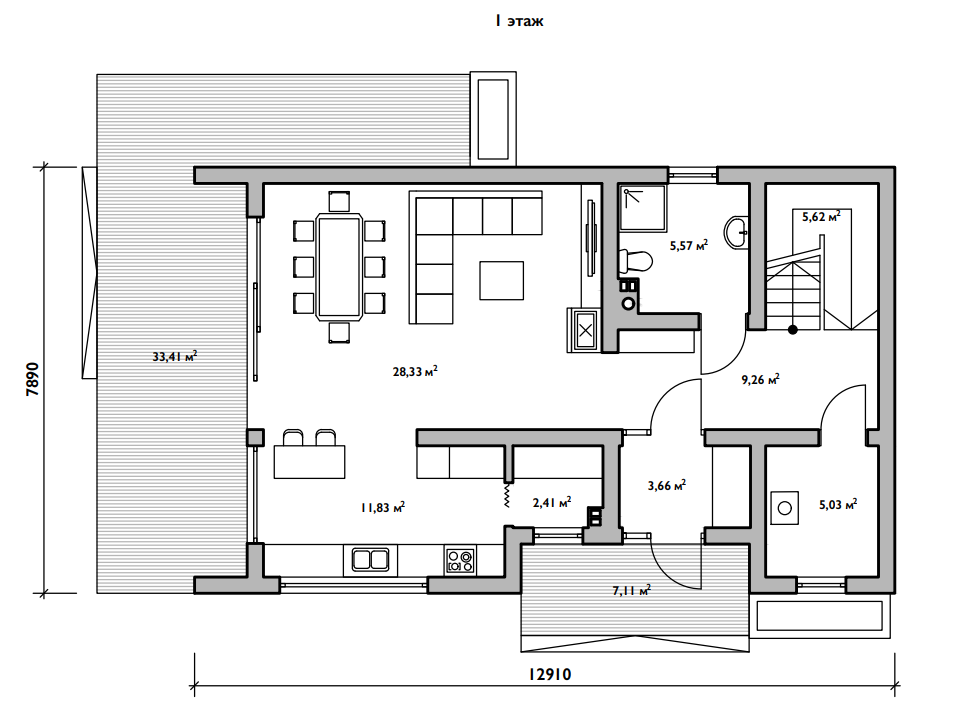 Простота форм – коробка в виде вытянутого прямоугольника, двускатная крыша, минималные свесы. Жесткий каркас из опорных клееных балок. Второй свет на всей протяженности или в одной из торцевых частей. Панорамное остекление, максимум свободного пространств.